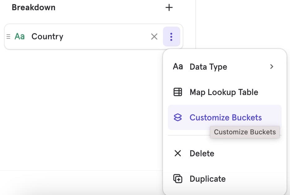 Add a property in Breakdown, then select the Customize Buckets option from the overflow menu